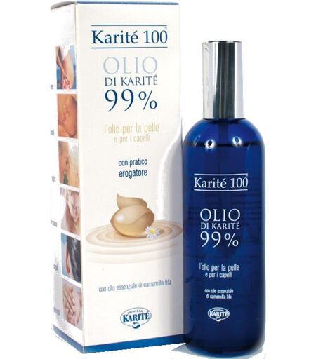Olio Con Erogatore Karitè 100 Olio di Karitè Spray 100 ml è un mix di olio di Karité e olio essenziale di Camomilla Blu. Utile nel ripristino della naturale elasticità cutanea, l' olio di Karitè svolge una importante azione ristrutturante agendo direttamente sulla formazione dei fibroblasti. L'olio di Karitè mantiene inalterato il contenuto di insaponificabili del burro di Karitè e di conseguenza ne mantiene tutte le sue prerogative. Particolarmente indicati per soggetti con pelle secca, alipidica, disidratata, fragile, sensibile alle intemperie. Anziani, bambini, donne in gravidanza con pelle delicata, predisposta a irritazioni e arrossamenti o con parti del corpo a contatto con ristagni umidi e sfregamenti. Per i capelli aridi e sfibrati come ristrutturante pre-shampoo. Ingredienti OLIO DI KARITÉ: utile nel ripristino della naturale emollienza ed elasticità cutanea, lolio di Karitè svolge una importante azione ristrutturante agendo direttamente sulla formazione dei fibroblasti. ...