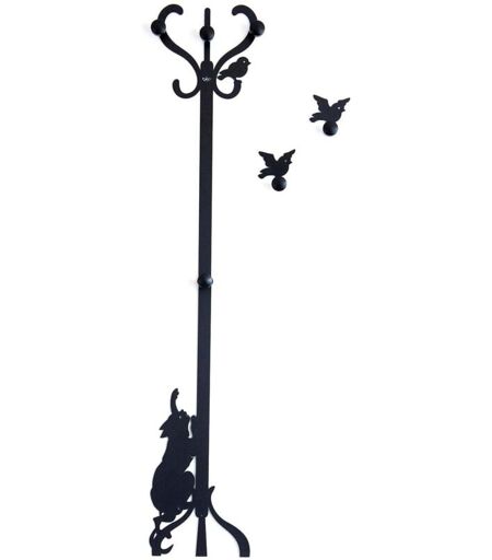ARTI E MESTIERI - Appendiabiti Romeo e gli uccellini da parete in ferro con pomelli in legno, Design decorativo Made in Italy 30x130 cm, Stile