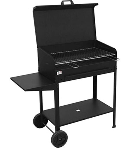Struttura in lamiera verniciata nera spessore Mm. 0,60. Griglia in acciaio cromato Cm. 75,5x40x24 doppio spessore, regolabile su 2 livelli. Braciere estraibile costruito in acciaio verniciato di altissima qualità situato sotto la griglia di cottura per contenere il combustibile. Pianetto laterale, ampio cassetto raccogli cenere estraibile frontalmente ed ampio piano d'appoggio sottostante il vano cottura. Ruote maggiorate su gambe anteriori e protezioni antiraschio su gambe posteriori. ...