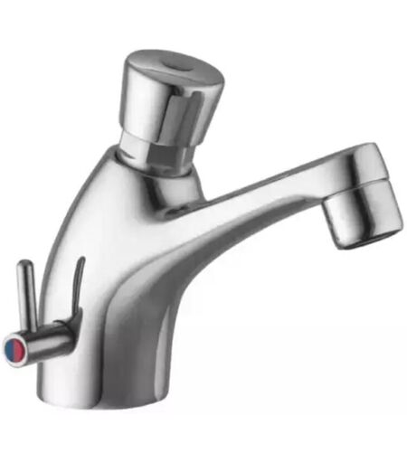 PORTA & BINI Rubinetto collo cigno cromato temporizzato con comando a pulsante e leva caldo/freddo per lavabo 1/2' porta e bini