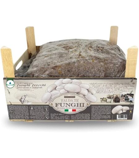 ACQUAVERDE Kit Coltivazione Funghi Champignon o Prataiolo, Bianco, Micelio incubato e pronto alla coltivazione con Terriccio – Nuovo Packaging in Legno