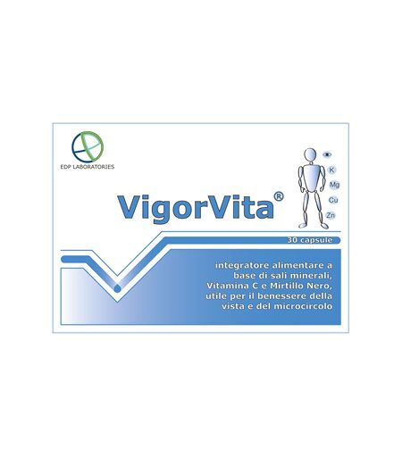 VigorVita - Descrizione VigorVita è un integratore alimentare a base di sali minerali vitamina C e mirtillo nero utile per il benessere della vista e del microcircolo. Consigliato in caso di: - stanchezza cronica - nervosismo insonnia - crampi e spasmi muscolari - disturbi cognitivi - rallentame… ...