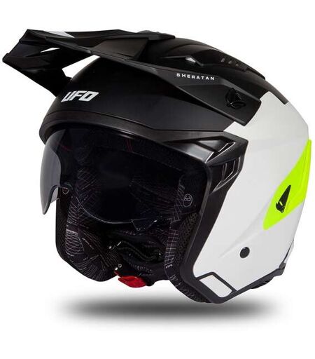Casco Moto Jet Ufo SHERATAN Bianco Nero Giallo Fluo Opaco taglia S