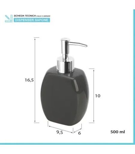 Set accessori bagno da appoggio con dispenser sapone liquido e bicchiere porta spazzolini in ceramica grigio linea Parigi La linea di accessori Parigi in ceramica colorata si caratterizza per praticità di utilizzo unita ad un design altamente innovativo. Linee morbide ed eleganti che cambieranno l'aspetto al vostro ambiente bagno. Questo set è composto da un dispenser dosa sapone liquido con capacità 500 ml ed un bicchiere portaspazzolini,entrambi in ceramica smaltata colore grigio. Set accessori bagno da appoggio – riepilogo caratteristiche: Tipologia: set 2 accessori bagno da appoggio; Materiale: ceramica; Colore: grigio; Serie: Parigi; Composizione: dispenser sapone liquido e porta spazzolini; Dimensioni dispenser: H 16.5 x p 6 x L 9.5 cm; Capacità: 500 ml; Dimensioni porta spazzolini: H 10 x p 6 x L 9.5 cm; ...