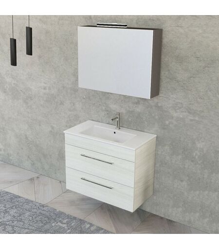 INBAGNO Mobile bagno sospeso 80 cm Smart bianco legno con specchio contenitore