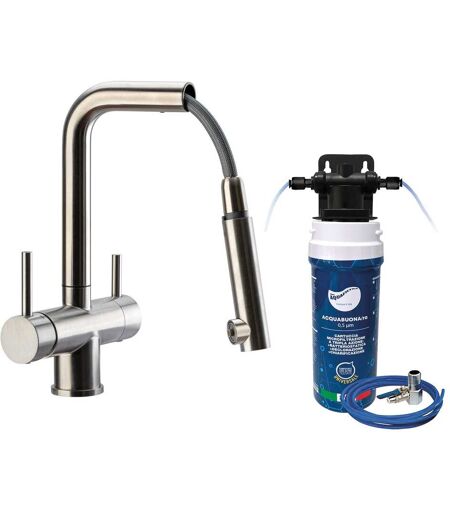 Acquafiltra SISTEMA DI FILTRAZIONE CON MISCELATORE LAVELLO 3 VIE DOCCETTA ESTRAIBILE INOX