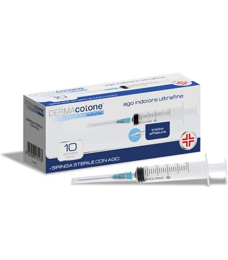 DERMAcotone SIRINGA STERILE CON AGO Descrizione Siringa con ago indolore, pronta all’uso. Massima trasparenza e migliore visibilità. Con ago staccabile ultrafine. La siringa è atossica, apirogena, sterile a confezione chiusa e integra. Senza lattice e ftalati. Modalità d'uso Aprire come indicato e sfilare la siringa. Premere, con una leggera rotazione, l’ago sul cono della siringa, prima di togliere il cappuccio protettivo. Fare attenzione a non toccare l’ago. Dopo aver utilizzato il dispositivo mettere in sicurezza l’ago riponendovi il cappuccio protettivo e gettarlo in un contenitore rigido. Avvertenze Monouso: non riutilizzare. Conservazione Validità a confezionamento integro: 60 mesi. Formato 10 siringhe sterili da 5 ml con ago 23G Dimensioni ago: 0,6x25 mm Cod. 177 ...