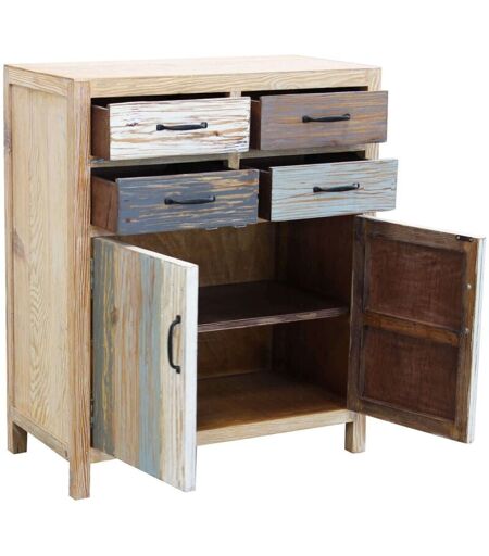 Hai mai desiderato avere un pezzo d'arredo unico e affascinante? La credenza COLORWOOD in legno in stile anticato è proprio quello che fa per te! Con le sue due ante e quattro cassetti, offre un ampio spazio per riporre gli oggetti e tenerli sempre in ordine. E non è tutto! Puoi anche esporre i tuoi libri preferiti, vasi o altre decorazioni sul robusto piano superiore. Che tu voglia utilizzarla come credenza nel salotto o come comodino in camera da letto, questa credenza in legno riciclato sarà una scelta eccellente. ...
