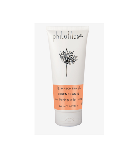 Maschera Rigenerante Phitofilos: Maschera capelli ristrutturante e rivitalizzante. Rivitalizza e districa la chioma, rendendola i capelli morbidi ed elastici. Per capelli danneggiati, sfibrati ed aridi.Con moringa, spirulina, canapa, riso, olio di lino, olio d'oliva, olio di rosa mosqueta, albicocca, cocco, miglio, olio di mandorle dolci ed olio di jojoba. Distribuisci su punte e lunghezze in maniera uniforme, lasciare in posa 10-15 minuti. La Maschera Rigenerante di Phitofilos è una maschera capelli restitutiva, districante e nutriente per capelli danneggiati, sfibrati ed aridi. A base di moringa, spirulina, canapa, riso, olio di lino, olio d'oliva, olio di rosa mosqueta, albicocca, cocco, miglio, olio di mandorle dolci ed olio di jojoba che nutrono e rivitalizzano la chioma, lasciandola setosa a lungo. I capelli saranno morbidi, elastici e lucenti. Consigli d'uso:Distribuisci su punte e lunghezze umide, distribuendo in maniera uniforme. Lascia in posa 10-15 minuti. Procedi al risciacquo. INCIAqua [Water], Myristyl alcohol, Behenamidopropyl dimethylamine, Caprylic/capric triglyceride, Cetyl alcohol, Moringa oleifera leaf extract, Spirulina platensis extract, Hydrolyzed hemp seed extract, Hydrolyzed rice protein, Almond/Borage/Linseed/Olive acids/glycerides, Rosa moschata seed oil, Cannabis sativa seed oil*, Prunus amygdalus dulcis (Sweet almond) oil*, Ricinus communis (Castor) seed oil*, Simmondsia chinensis (Jojoba) seed oil*, Prunus armeniaca (Apricot) fruit extract*, Cocos nucifera (Coconut) fruit extract*, Panicum miliaceum (Millet) seed extract*, Glycerin, Citric acid, Tocopherol, Potassium sorbate, Sodium benzoate, Lactic acid, Benzyl alcohol, Sodium dehydroacetate, Parfum [Fragrance]** *da agricoltura biologica **senza allergeni Controlliamo con cura le descrizioni dei nostri prodotti ma alcuni dati riportati sulla confezione del prodotto (INCI, consigli di utilizzo, certificazioni) possono variare in base agli aggiornamenti dei produttori. Non sempre questi aggiornamenti ci vengono comunicati e può capitare che le informazioni sulla confezione differiscano da quelle riportate qui sul sito. Ti chiediamo perciò di fare sempre riferimento alle informazioni che trovi sul prodotto. Le immagini riportate hanno uno scopo puramente indicativo e possono essere soggette a variazioni da parte dei produttori. ...