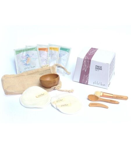 Il Face Mask Set di Phitofilos è un kit viso che contiene maschere viso ed accessori per una cura completa della pelle. Il Face Mask Set di Phitofilos è un kit viso contenente tutto il necessario per la pulizia della pelle. Il Kit Contiene: 1 Maschera Viso Purificante 10 g è una maschera in polvere dall'azione astringente e sebo-normalizzante che rende la pelle purificata e normalizzata. 1 Maschera Viso Antiage 10 g è una maschera in polvere dall'azione antiossidante e nutriente che rende la pelle compatta e distesa. 1 Maschera Viso Illuminante 10 g è una maschera in polvere dall'azione antiossidante idratante ed astringente che dona nuova luce alla pelle. 1 Maschera Viso Nutriente 10 g è una maschera in polvere dall'azione antiossidante, lenitiva e ricostituente per pelle secca e matura. 3 pad struccanti lavabili in una retina mesh bagCiotolina in legno di bambùPennellino in legno e fibra di bambùSpatolina in legno di bambùCucchiaino in legno di bambù Come si usa il Face Mask Set di PhitofilosUnire con acqua calda per ottenere una consistenza cremosa. Distribuire su pelle detersa con un pennello o con le dita, evitando il contorno occhi. Lasciare agire 15-20 minuti. Risciacquare con acqua tiepida. Face Mask Set Phitofilos INCI/IngredientiMaschera Viso Nutriente: Althaea Officinalis Root Powder, Kaempferia Galanga Root Powder, Daucus Carota Sativa Root Powder, Adansonia Digitata L. Fruit Powder, Panicum Miliaceum Seed Powder, Avena Sativa Fruit Powder, Pyrus Malus Fruit Powder, Emblica Officinalis Fruit Powder, Cucurbita Moschata Fruit Powder Maschera Viso Purificante: Melia Azadirachta Leaf Powder, Ziziphus Spina Christi Leaf Powder, Sapindus Mukorossi Fruit Shell Powder, Kaempferia Galanga Root Powder, Bentonite, Cyperus Scariosus Root Powder, Mentha Viridis Leaf Powder Maschera Viso Antiage: Emblica Officinalis Fruit Powder, Rosa Damascena Flower Powder, Althaea Officinalis Root Powder, Withania Somnifera Root Powder, Cucurbita Moschata Fruit Powder, Pyrus Malus Fruit Powder, Serenoa Repens Fruit Powder Maschera viso Illuminante: Rosa Damascena Flower Powder, Adansonia Digitata L. Fruit Powder, Hibiscus Sabdariffa Flower Powder, Curcuma Longa Root Powder, Cucurbita Moschata Fruit Powder, Daucus Carota Sativa Root Powder, Camelia Sinensis Leaf Powder, Astragalus Gummifer Gum Powder ...