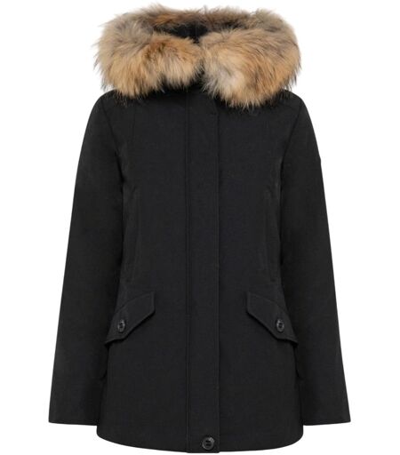 Parka corto realizzato in tessuto ad alta densita con imbottitura interna in piuma naturale. Progettato per affrontare i climi piu rigidi. Esternamente e presente un ampio cappuccio con bordo in pelliccia naturale di volpe rimovibile, tasche scaldamano al petto foderate con chiusura a zip, ampie tasche basse chiuse con finta e bottone. Internamente e presente una comoda tasca portadocumenti per portare in sicurezza il proprio device. Tessuto ad alta densita, compatto e adatto con parka e piumini pesanti. ...