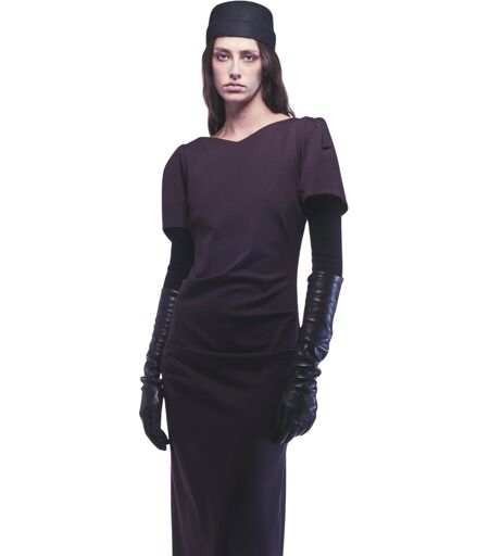 ABITO LUNGO IN PUNTO MILANO CON SCOLLO A V DAVANTI E DIETRO. LINEA ADERENTE SUL BUSTO E GONNA DRITTA CON DRAPPEGGIO LEGGERO SUL DAVANTI. MANICHE CORTE A TULIPANO E CHIUSURA CON ZIP INVISIBILE SUL RETRO. LUNGHEZZA ALLA CAVIGLIA. ...