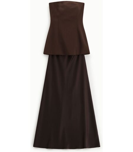 Abito lungo dal design essenziale con silhouette svasata e scollo dritto senza maniche. Una cintura sottile accentua il punto vita, offrendo una linea definita che valorizza l’individualità . Il taglio pulito e la lunghezza slanciata consentono di creare combinazioni contemporanee per occasioni formali o serali. ...