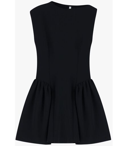 Abito corto dalla linea svasata, valorizzato da un raffinato scollo barca e costruzione senza maniche. La silhouette contemporanea, arricchita da dettagli drappeggiati laterali, interpreta con versatilità le esigenze di un pubblico metropolitano attento alle tendenze. Ideale per creare outfit originali e distintivi. ...