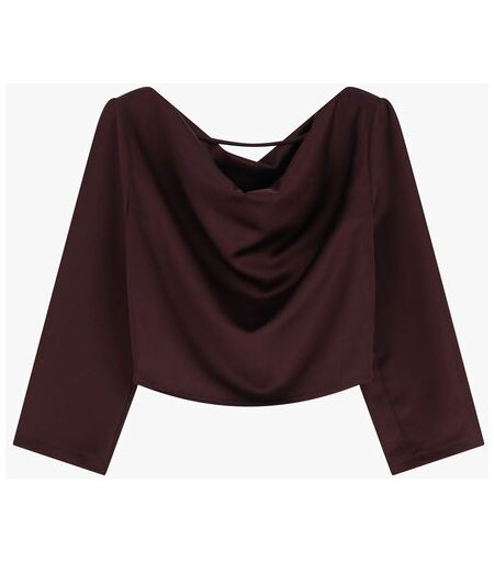 Top cropped dal taglio sofisticato, caratterizzato da una linea pulita e scollo morbido dalla costruzione asimmetrica. Le maniche a 3/4 donano equilibrio alla silhouette e favoriscono l’abbinamento con pantaloni sartoriali o gonne midi. Ideale per creare look che riflettano un gusto personale aggiornato ai trend contemporanei. ...