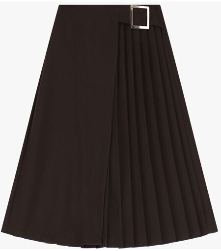 Struttura raffinata dal taglio midi, presenta una silhouette asimmetrica arricchita da pieghe nette laterali e una cintura con fibbia quadrata in metallo. Pensata per una versatilità sofisticata, consente combinazioni che valorizzano l’individualità e l’attitudine contemporanea di chi desidera esprimere creatività nel proprio guardaroba. ...