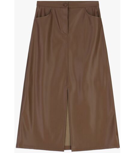 Imperial Gonna Midi A Vita Alta Con Tasche E Spacco Frontale Tabacco Xs