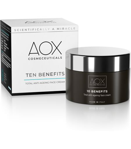 Crema Viso Antiage Completa ad Alta Performance - DESCRIZIONE PRODOTTO: - AOX Ten Benefits 50 ml è la crema viso anti - aging totale studiata per contrastare contemporaneamente 10 segni dell’invecchiamento cutaneo: rughe, pori dilatati, increspature, secchezza, discromie, impurità, perdita di lumin… ...