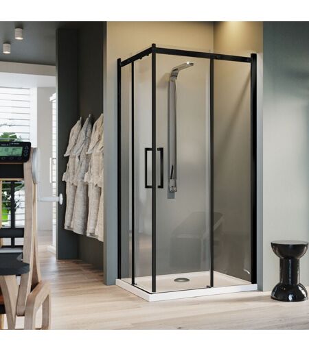 IDRALITE - Box doccia vetro 8 mm h 200 mod. Prime Corner 70x80 cm Black