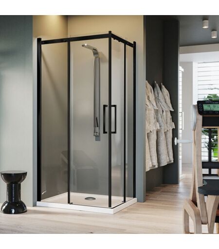 IDRALITE - Box doccia vetro 8 mm h 200 mod. Prime Corner 90x120 cm Black