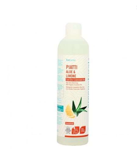 Il Detersivo Liquido per Piatti con Aloe Vera e Limone di Green Natural sgrassa ed igienizza a fondo piatti e stoviglie. Il Detersivo Liquido per Piatti con Aloe Vera e Limone di Green Natural rimuove le macchie più difficili in modo efficace e naturale, rilasciando un fresco profumo agrumato. \n Igienizza profondamente le stoviglie. Disincrosta, sgrassa, pulisce sia utilizzato direttamente, sia diluendolo nell\'acqua. \n Come si usa il Detersivo Liquido per Piatti con Aloe Vera e Limone di Green Natural \n Distribuire una noce di prodotto (5/10 ml) in 5 litri d\'acqua. Immergere le stoviglie e lavare accuratamente. Risciacquare e asciugare per non lasciare aloni. \n Prova anche lo Sgrassatore! \n Detersivo Liquido per Piatti con Aloe Vera e Limone Green Natural INCI/Ingredienti \n Aqua (water), Sodium coceth sulfate, Layuryl/Myristyl glucoside, Sodium chloride, Aloe barbadensis leaf juice*, Cocamidopropyl betaine, Citrus limon (lemon) fruit oil*, Lactic acid, Sodium benzoate, Potassium sorbate, Limonene. *da agricoltura biologica certificata. ...