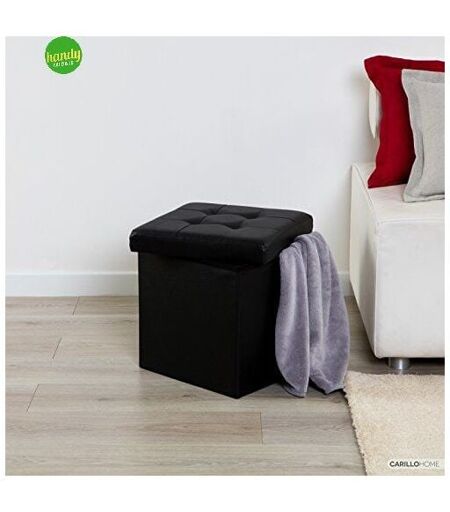 Moderno sgabello basso (POUF) di colore nero che si adatta a tutti i tipi di arredamento. Ideale anche come comodo poggiapiedi in salotto, camera da letto, sala da pranzo, o nei piccoli spazi. Pouf con 40 litri di capacità. Spazio per riporre giocattoli, coperte e molto altro ancora. Basta rimuovere il coperchio e riporre gli oggetti all'interno. Ideale come sedile per bambini e adulti, comodo ed elegante portaoggetti. Struttura in MDF,rivestimento in morbido similpelle in PU, imbottitura che permette di sedersi a lungo senza problemi. Materiale resistente e stabile ai detergenti e sfregamenti. Capacità di carico: 110 kg Pouf quadrato misura 38 x 38 x38 cm, pieghevole. Dimensioni imballo: 6 x 38 x 38 cm ...