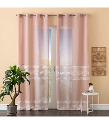 Tenda confezionata con borchie, semi-trasparente con fondo tinta unita e ricamo floreale, dimensioni 140x280.Ogni confezione contiene 1 pannello. ...