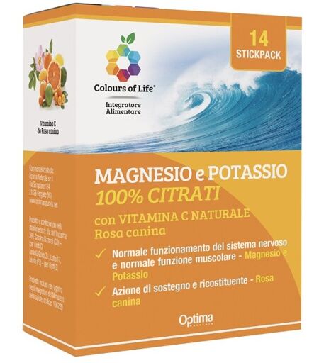 Optima Naturals Srl Colours Of Life Magnesio e Potassio 100% Citrati Con Vitamina C Naturale 14 Stickpack - Integratore Alimentare