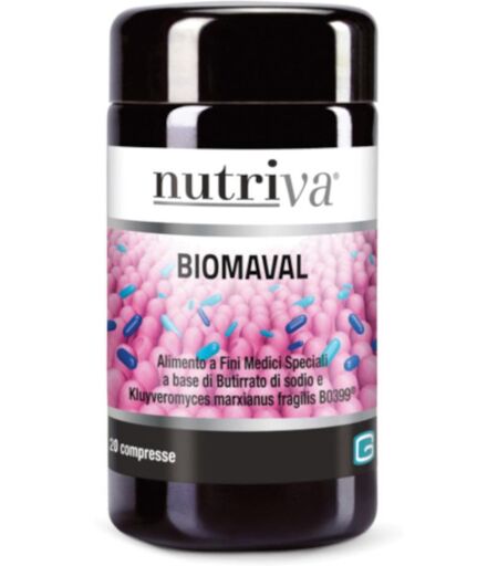 nutriva BIOMAVAL - Descrizione Alimento a fini medici speciali a base di Butirrato di sodio e Kluyveromyces marxianus fragilis B0399, indicato per il trattamento dietetico di soggetti con processi infiammatori cronici intestinali e alterato trofismo della mucosa intestinale (colon). Ingredienti But… ...
