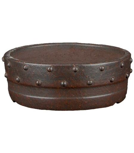 VASO PER BONSAI ROTONDO BORCHIATO IN GRES 10,5x10,5x3,5 cm - B113a. Vaso per bonsai rotondo borchiato color marrone scuro in gres, di manifattura cinese e facente parte della linea TOP QUALITY. Il vaso è prodotto interamente a mano da artisti cinesi che imprimono il loro marchio sul fondo del vaso stesso. Presenta ampi fori per il drenaggio e fori dedicati per il passaggio del filo allumino-ramato per la legatura della pianta. Il vaso presenta le seguenti misure: • esterno 12x12x4,5 cm; interno: 10,5x10,5x3,5 cm. ...