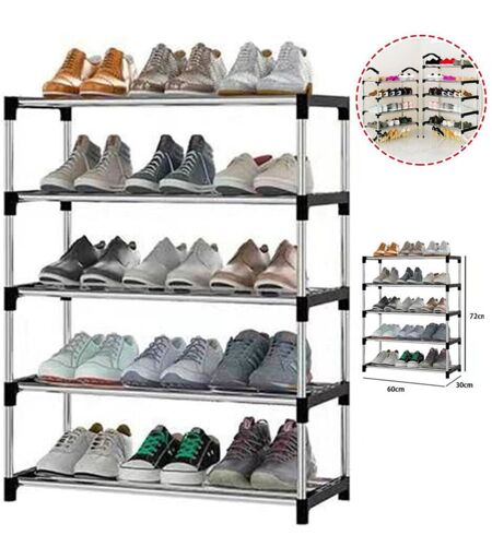 TRADE SHOP TRAESIO - Scarpiera Scaffale Casa Multiuso 5 Ripiani In Metallo Salvaspazio 60x30x72cm -