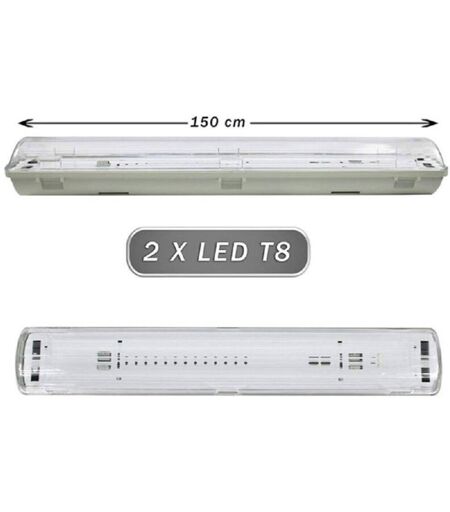 TRADE SHOP TRAESIO - Plafoniera Stagna 2 Neon Led Tubo T8 G13 150 Cm Da Parete Soffitto Ip65 T8-150s -