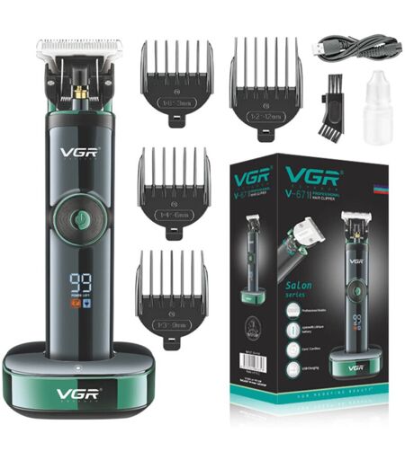 Taglia capelli professionale vgr 671 per la cura personale, trimmer per gli uomini, veloce ricarica con pettini guida.Tipo di alimentazione: Ricaricabile/elettricoTensione: 100-240 vMateriale della lama: acciaiotempo di ricarica: 3,5 oretempo di utilizzo: 400 minpotenza: 10 wlame professionalibatteria al litio da 2500 mahsenza filiricarica usb ...