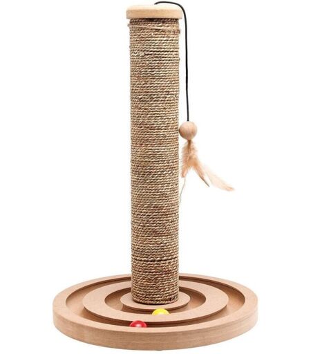 TRADE SHOP TRAESIO - Tiragraffi Crine Veg+gioca Brigitte Gioco Con Piume Pista Palline Gatto 30x44 Cm -