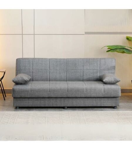 Divano letto contenitore click clack Moon senza braccioli in tessuto Internobase 11 grigio Caratteristiche: Divano 3 posti Funzione letto Funzione click clack Con contenitore Senza braccioli Rivestimento in tessuto Internobase 11 Colore grigio 2 cuscini decorativi Dimensione area letto: 103X180 cm. Profondità seduta 52 cm. Altezza seduta 42 cm. Dimensioni divano: L 180 x P 81 x H 83 cm. ...