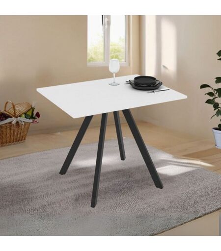 TOSCOHOME Tavolo rettangolare fisso con piano colore bianco frassinato e gambe nere 90x70 cm Lucas