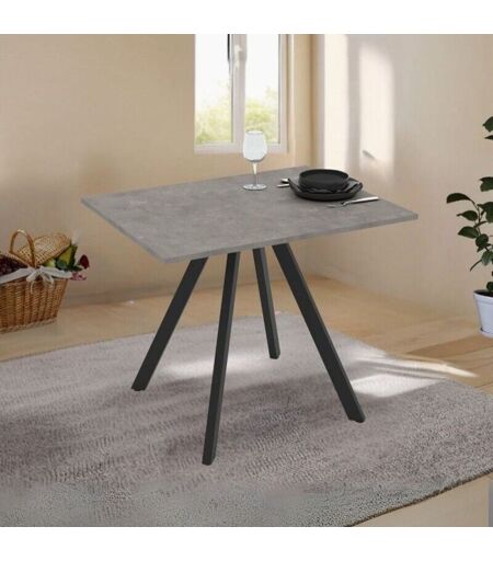 TOSCOHOME Tavolo rettangolare fisso con piano colore grigio cemento e gambe nere 90x70 cm Lucas