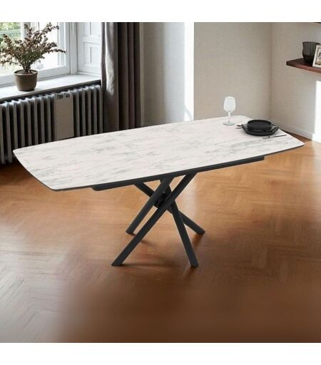 TOSCOHOME Tavolo allungabile con piano marmo bianco e gambe a stelo incrociate nere 138/178x90x76H Katrin