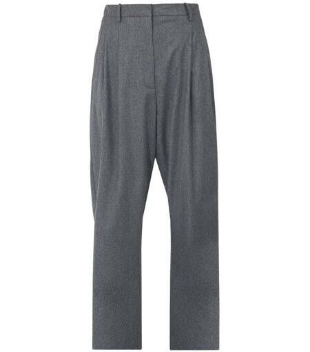 Pantalone carrot in panno. Passanti per cintura. Chiusura frontale con gancetto, zio e controbottone. Elastico in terno con bottoni per regolare l'ampiezza della vita. Pinces frontali. Due tasche laterali a filetto. Pinces sul retro. Una tasca a filetto sul retro con bottone. Larghezza fondo: 22 cm. Composizione tessuto: 34% viscosa, 33% poliestere, 32% lana, 1% elastane. Vestibilita: regolare. La modella indossa la taglia 40 ed e alta 175 cm. Amiamo questi pantaloni perche sono perfetti per giocare con le proporzioni trasformando anche il piu semplice degli outfit in un look di tendenza. ...