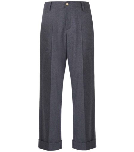 Pantaloni ampi in misto lana. Passanti per cintura. Chiusura frontale con bottone, zip e controbottone. Pinces sul retro. Due tasche sul retro con patta e bottone. Due tasche laterali inserite in cucitura. Gamba dritta con piega centrale. Risvolto al fondo. Larghezza fondo: 27 cm. Composizione tessuto: 33% viscosa, 33% lana, 33% poliestere, 1% elastane. Vestibilita: regolare. Made in Italy. La modella indossa la taglia 38 ed e alta 175 cm. Amiamo questi pantaloni per il taglio sartoriale e la loro sobrieta. ...