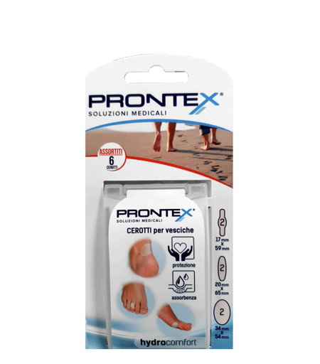 Prontex Hydrocomfort Cerotti Vesciche - Trattamento e prevenzione delle vesciche - Facilita il processo di guarigione - Sollievo dal dolore - Resistente all'acqua, traspirante, latex free. Composizione Idrocolloide H1014 adesivo. Film in PU Avvertenze Solo per uso esterno. Non utilizzare su ferite infette. Formato 6 cerotti. ...