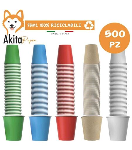AKITAINK - 500 Bicchierini caffe' monouso di carta Biodegradabile e Compostabile da 75ml