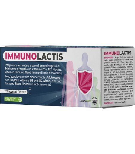 IMMUNOLACTIS - Descrizione Integratore alimentare a base di estratti vegetali con zinco e vitamine ed Immuno Blend mix di fermenti lattici tindalizzati. L'echinacea migliora le naturali difese dell'organismo e le funzionalità delle prime vie respiratorie. Lo zinco la vitamina D e la vitamina B12… ...