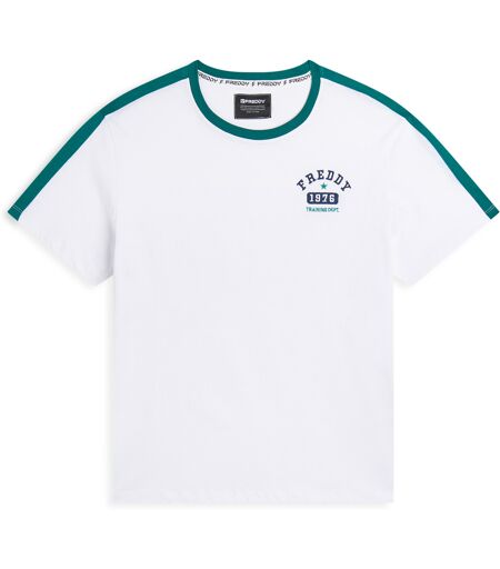 Freddy T-shirt uomo con dettagli a contrasto e logo stile college Bianco Uomo Xx Large