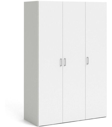 Pratico e funzionale guardaroba a tre ante battenti con quattro ripiani interni e barra appendiabiti nelle due ante centrali. Con la sua struttura interamente di colore bianco è la soluzione ideale per l'arredamento di una camera da letto moderna che necessita di soluzioni pratiche ed efficaci per occupare il minor spazio possibile. La sua struttura interna, è infatti studiata per riporre in modo ordinato sia i vestiti che vanno appesi sulla barra appendiabiti, sia quelli che vanno piegati e riposti sui ripiani. Costruito interamente in pannello truciolare melaminico, risulta resistente a urti e graffi e durevole nel tempo. Misure 115 x 175 x 49 cm ...