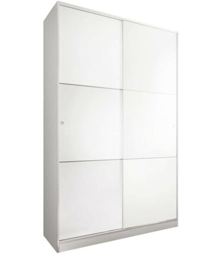 DMORA Guardaroba Waterbury, Armadio per camera da letto a 2 ante scorrevoli, Mobile con 3 ripiani e barra appendiabiti, cm 120x50h200, Bianco, con imballo
