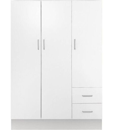 DMORA Armadio a tre a ante e due cassetti con ripiani e barra appendiabiti, colore bianco, cm 120 x 50 x 170