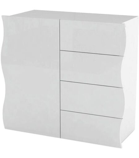 CREDENZA MODERNA: Credenza di design con linee esterne ondulate, utilizzabile come mobile da soggiorno porta TV, credenza moderna con un'anta e quattro capienti cassetti - Interamente di colore bianco lucido. STRUTTURA E UTILIZZO: Mobile da soggiorno pratica e salvaspazio strutturata con un'anta battenti e quattro comodi cassetti di ugual misura, internamente strutturata con scaffali - Ante e cassetti sono privi di maniglie entrambi dotati di forti cerniere/guide metalliche - La struttura è interamente di colore bianco lucido - Il ripiano superiore è perfetto per accogliere la vostra TV o i vostri soprammobili preferiti. PRATICO E INNOVATIVO: Il suo design moderno ed elegante rende questa credenza con ante e cassetti perfetta da posizionare in un ambiente moderno e luminoso, in qualsiasi stanza del vostro appartamento, dall'atrio fino alla camera da letto: è il prodotto ideale per chi è alla ricerca di un articolo funzionale salvaspazio per la propria casa - La colorazione bianco ...