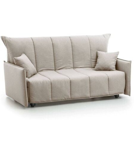 DIVANO LETTO 2 POSTI - Sofà con apertura a carrello in tessuto imbottito, Braccioli standard, 100% Made in Italy, Cm 150x90h85, Beige.RESISTENZA E COMODITÀ - La struttura del prodotto in ferro garantisce durevolezza, stabilità e resistenza nel tempo - Questo divano-letto include una rete letto elettrosaldata, un materasso indeformabile in poliuretano espanso alto 10cm, due braccioli standard da 20cm e due cuscini decorativi da 40x40cm - Il rivestimento è in un morbido tessuto di poliestere interamente sfoderabile e lavabile in lavatrice fino a 30 gradi, di colore beige - Con un semplice movimento questo divano diventa un pratico letto e il rivestimento diventa una comoda trapunta.MADE IN ITALY - L'articolo è prodotto in Italia, con l'impiego dei migliori materiali e la massima qualità e cura nei dettagli - L'accortezza dei processi produttivi è sinonimo di affidabilità, resistenza e raffinatezza per un design lineare ed elegante - La Certificazione Made in Italy è garanzia di piena ...