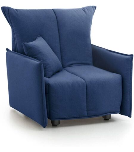 DIVANO LETTO ALMERINDA - Divano singolo, 100% Made in Italy, Poltrona soggiorno con apertura a carrello, in tessuto imbottito, con Braccioli standard, Cm 110x90h85, Blu. RESISTENZA E COMODITÀ - La struttura del prodotto in ferro garantisce durevolezza, stabilità e resistenza nel tempo - Questo divano-letto include una rete letto a doghe elettrosaldata, un materasso indeformabile in poliuretano espanso alto 10cm, due braccioli standard da 20cm e due cuscini decorativi da 40x40cm - Il rivestimento è in un morbido e delicato tessuto di poliestere interamente sfoderabile e lavabile in lavatrice fino a 30 gradi, di colore Blu - Il tessuto imbottito assicura morbidezza al tatto e serenità durante il sonno - Con un semplice movimento questo divano diventa un pratico letto e il rivestimento diventa una comoda trapunta. MADE IN ITALY - La produzione 100% italiana garantisce affidabilità, resistenza e comodità - I nostri prodotti nascono dall'esperienza di artigiani italiani che ne migliorano ...